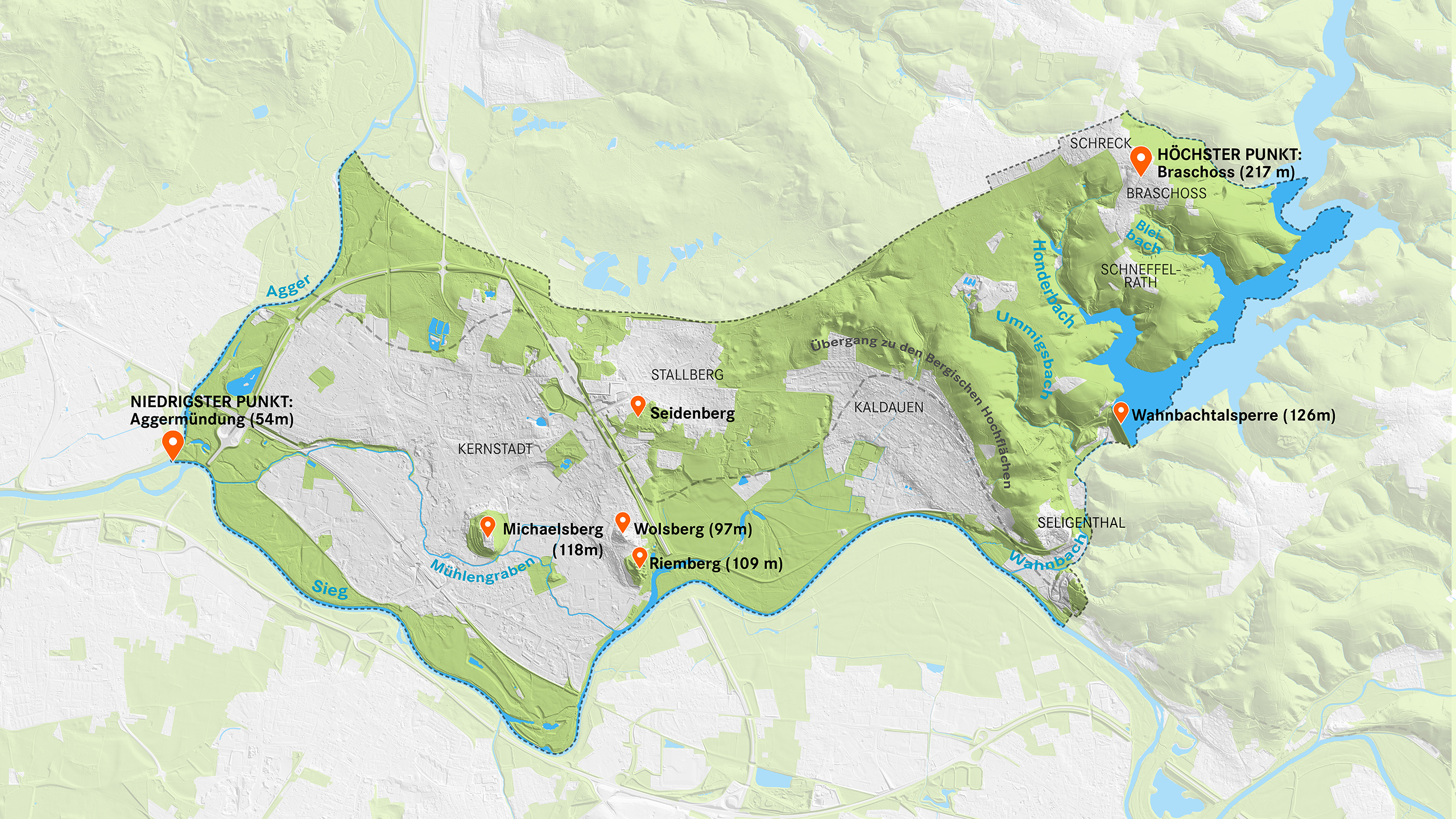 Aufbauend auf der Analyse und begleitenden Expertengesprächen soll ein thematisches und räumliches Leitbild entwickelt werden, dass die Grundausrichtung der Stadt Siegburg und den Umgang mit ihren Freiräumen für die nächsten Jahre verdeutlicht. Mit der Entwicklungsstrategie wird das räumliche Leitbild in einem nächsten Schritt vertiefend ausgearbeitet und die thematischen Ziele werden in Projektbausteinen konkretisiert.